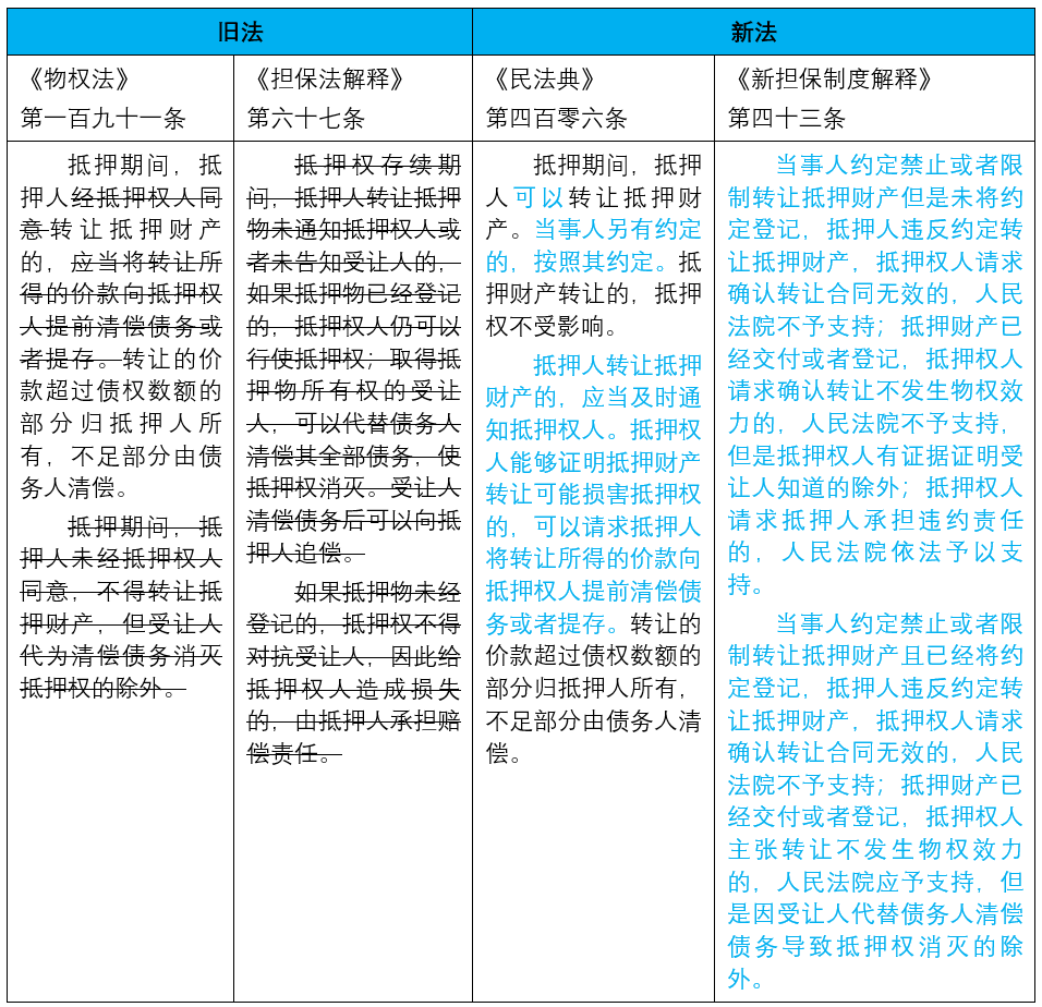 新法以抵押财产的自由转让为基点,通过禁止或限制转让的约定、请求提前清偿或提存的权利以及具有追及效力的抵押权来保护抵押权人,通过禁止或限制转让约定的登记来保护受让人,从而形成了一个巧妙的抵押财产转让制度。