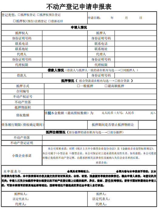 (《深圳市不动产登记申请表(适用抵押权首次登记)》的部分截图)